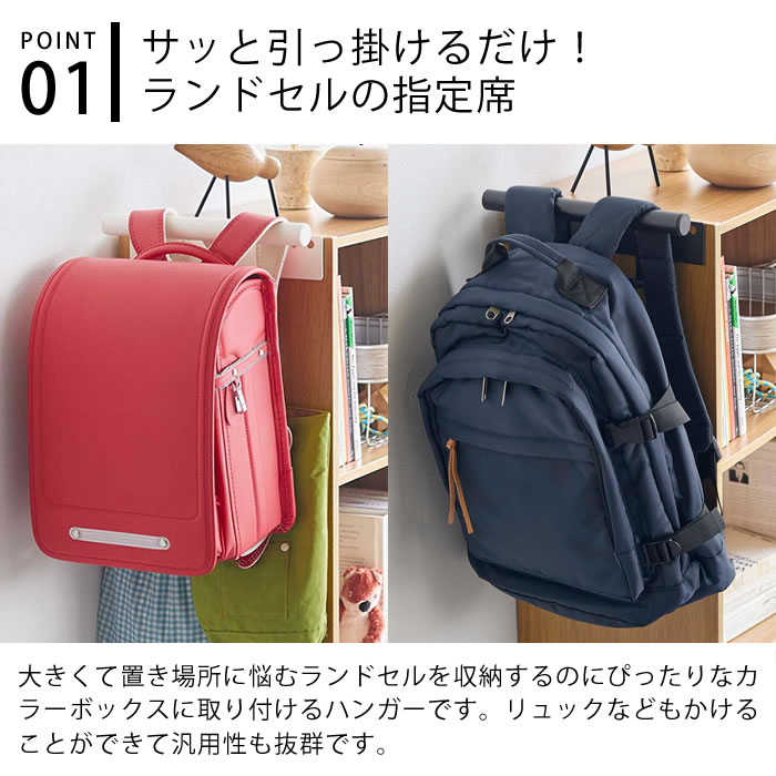 検索キーワード カラーボックス横 ランドセル&リュックハンガー タワー tower ランドセル 収納 5316 5317 子供部屋 リビング カラボ 壁面収納 リュック 上着 手提げ袋 給食袋 白 黒 ホワイト ブラック おしゃれ シンプル 山崎実業 yamazaki ラッピング ラッピングOK →詳細はこちらカラーボックス横 ランドセル&リュックハンガー タワー フック付きで便利カラーボックスに取り付けるランドセル・リュック用ハンガー カラーボックスに簡単に設置できるランドセルやリュックを掛けるハンガーです。